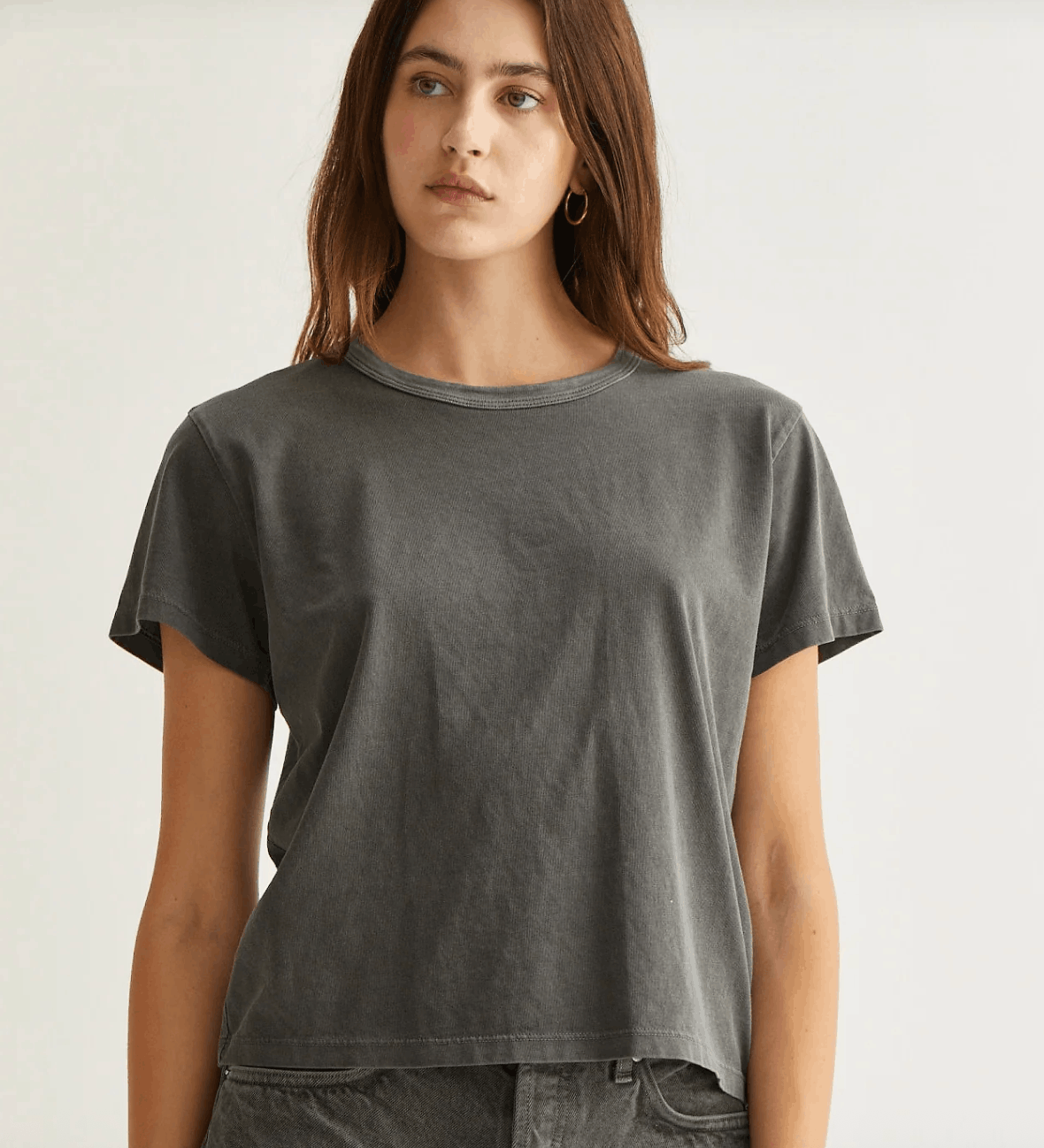 Meet your new go-to: The Asher Everyday Tee is that perfectly relaxed, wear-on-repeat kind of piece. Crafted from soft cotton with a slightly boxy fit, this tee drapes just right without trying too hard. With its vintage wash and effortless silhouette, it's the kind of staple that works with anything—from wide-leg denim to flowy skirts or your favorite cutoff shorts.