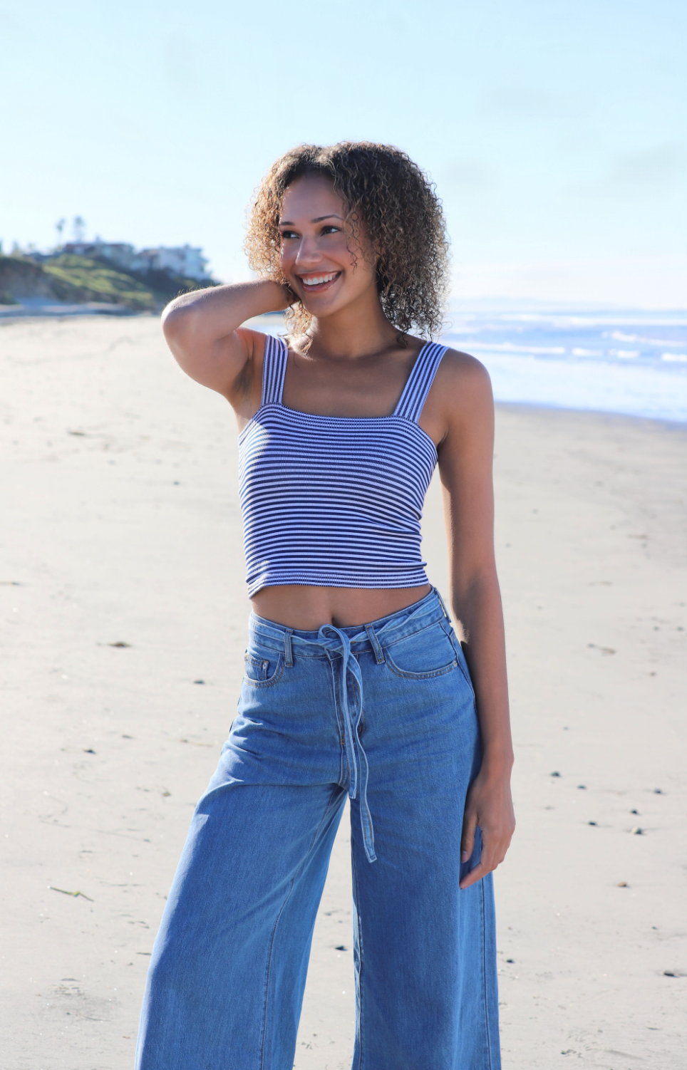 Add a pop of playful charm to your everyday lineup with this Striped Ribbed Tank, available in multiple colorways. Featuring a flattering square neckline, wide straps, and a fitted, slightly cropped silhouette, it’s your new go-to for everything from beach days to brunch dates.