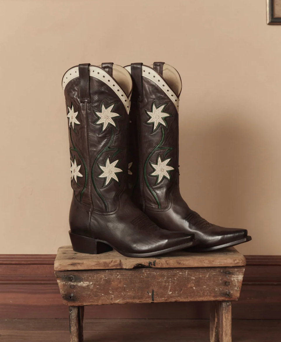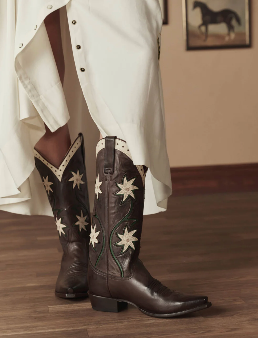 Made in collaboration with Stetson, whose legacy of authentic craftsmanship has defined the spirit of the West since 1865, this special edition boot combines time-tested craftsmanship with timeless western style. It features a supple leather vamp, 13” leather shaft with intricate floral embroidery, and a statement-making snip toe. An all-leather co-branded sole, crafted with lemonwood pegs and brass nails, and a hand-stacked leather heel provide a firm foundation, while premium cowhide leather lining and a cushioned leather insole ensure all-day comfort and support.