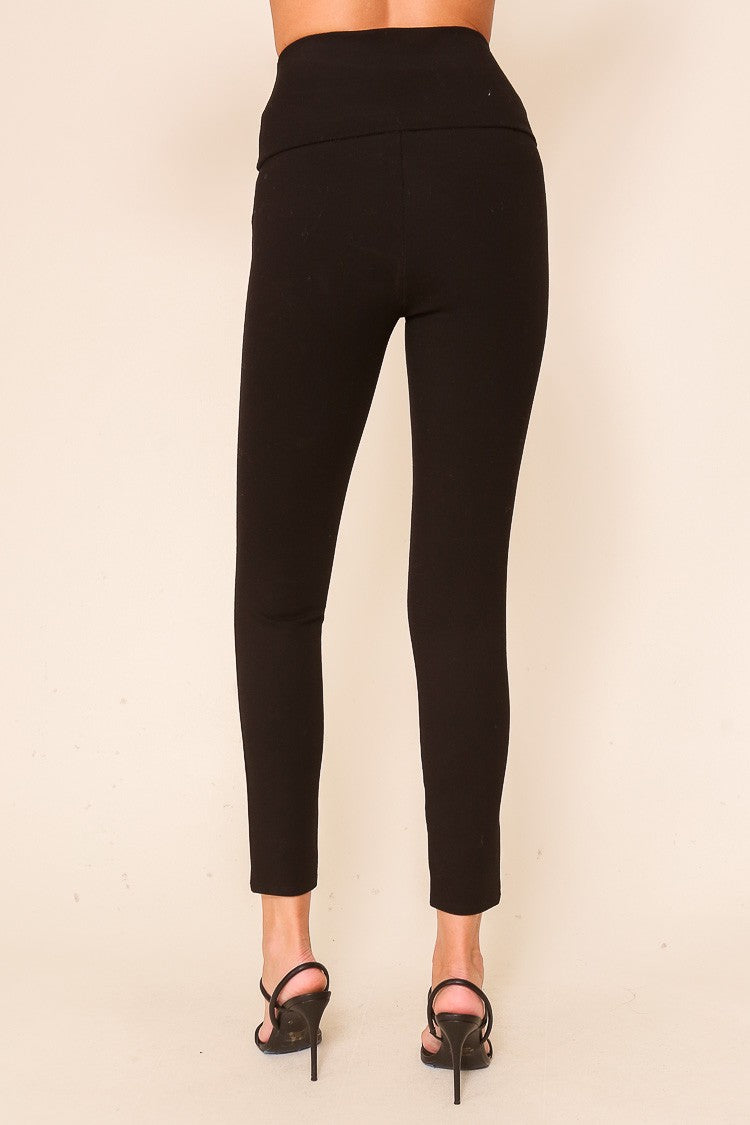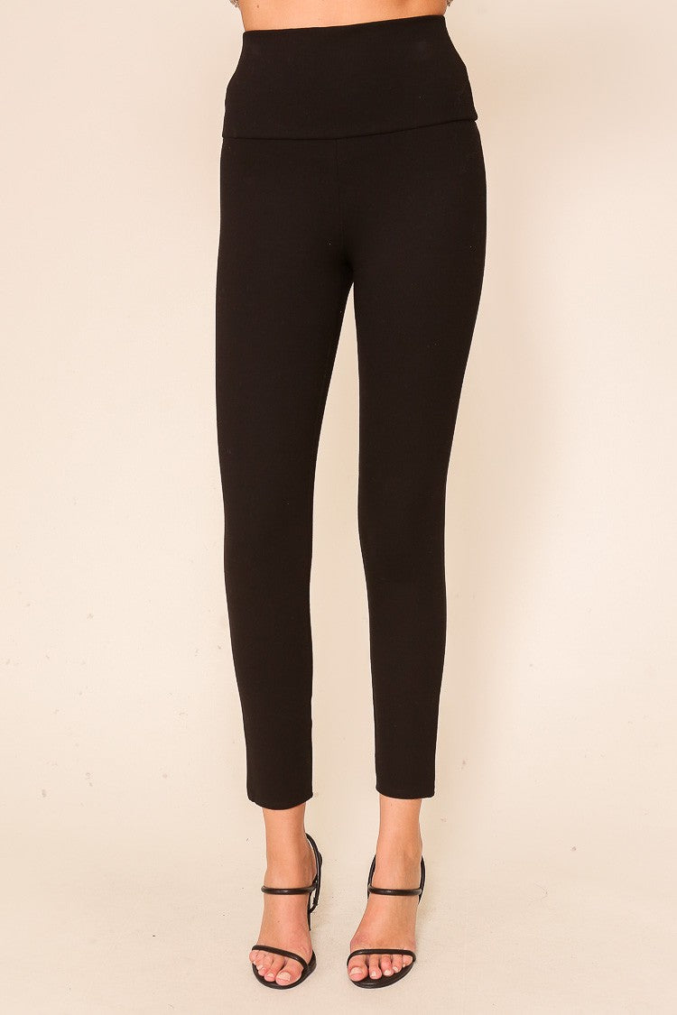 Elevate your basics with these sleek, full-length high-waisted ponte leggings—designed to offer the best of both comfort and polish. Made from a premium thick stretch fabric that ensures a smooth, non-see-through finish, these leggings give you all the stretch of your favorite activewear with the structured look of tailored pants.