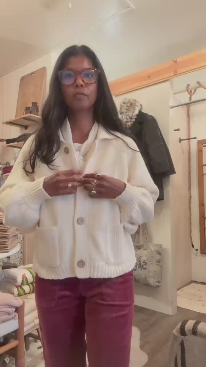 A cozy layer with a playful twist, The Cactus Button Front Sweater Cardigan brings desert charm to cooler days. Crafted in a creamy, chunky knit with a relaxed fit and wooden button closures, the back steals the show with a vibrant cactus intarsia design—complete with blooming orange flowers.