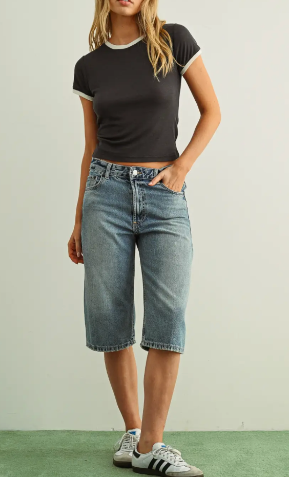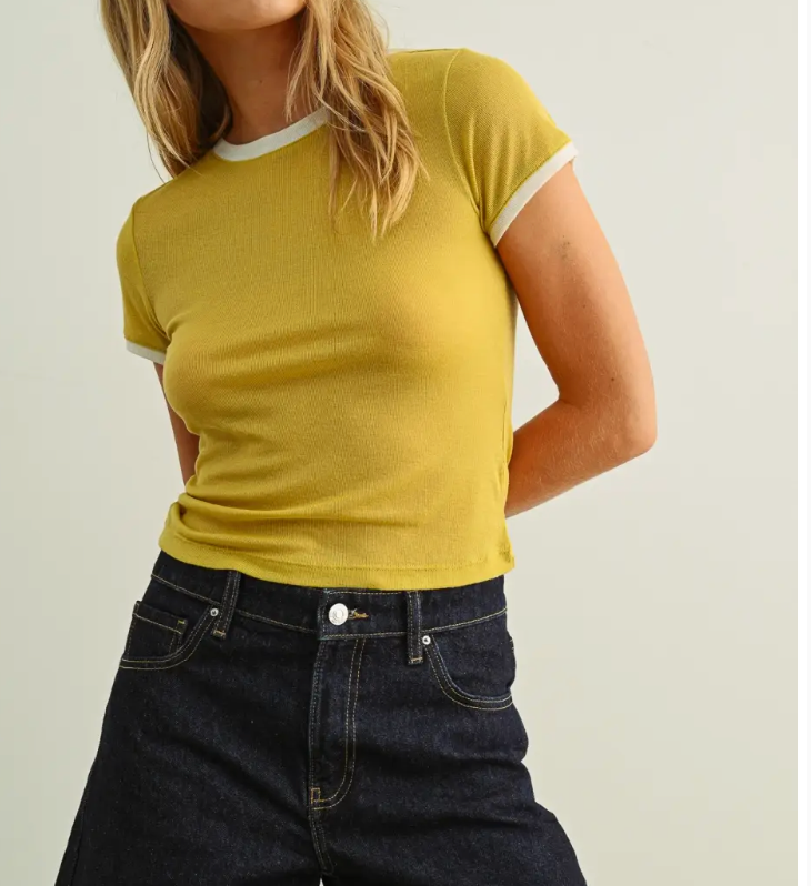 A throwback to retro California days, the Essential Ringer Tee is your everyday go-to with a vintage twist. With its contrast trim and slim, slightly cropped fit, this tee brings effortless cool-girl vibes whether you're kicking it in Encinitas or road-tripping the coast.