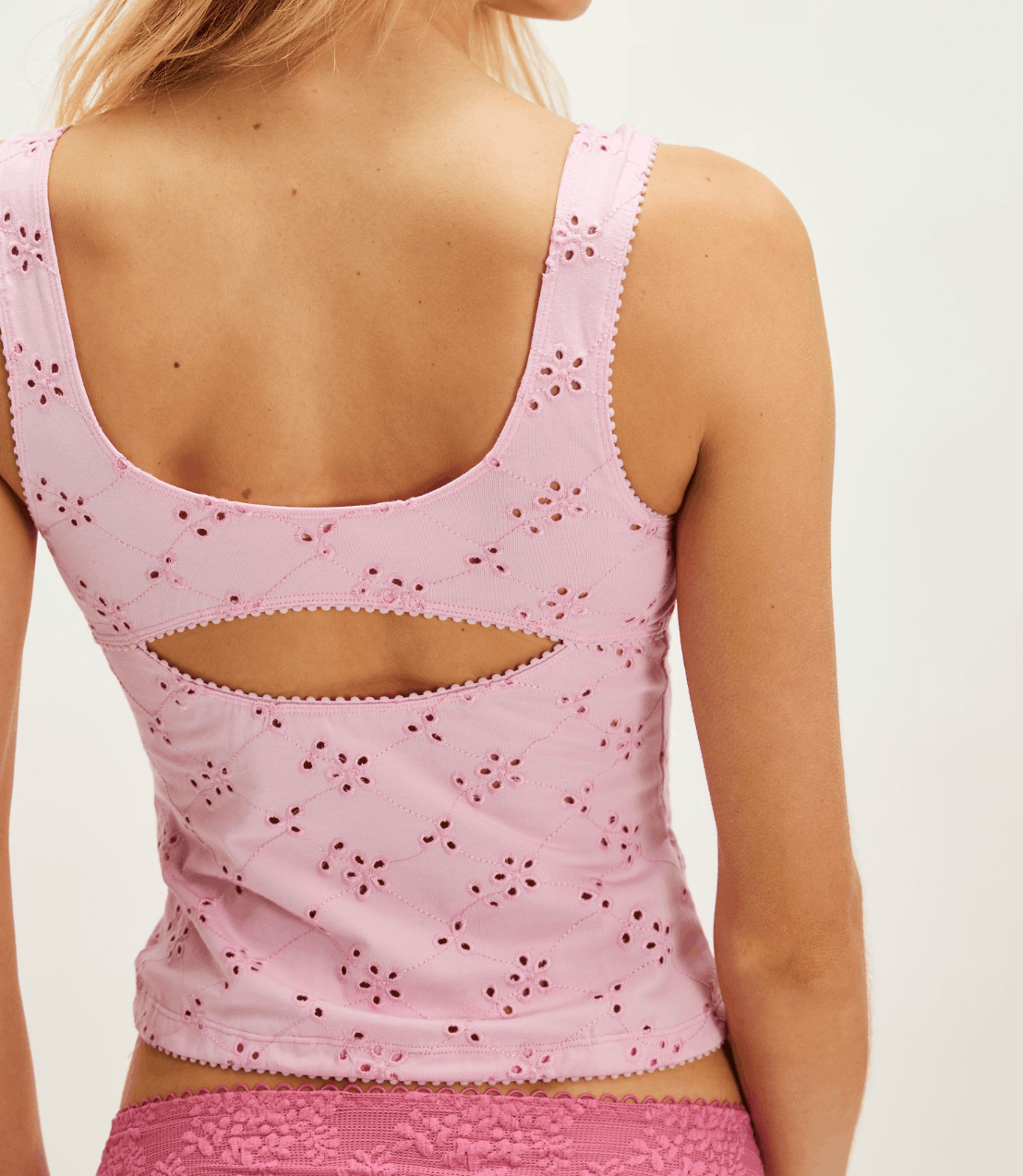This cami is sunshine in top form. The Full Bloom Eyelet Cami by Free People blends sweet, vintage-inspired eyelet details with a flattering, body-hugging silhouette. It features a soft square neckline and a playful back cutout for an unexpected twist. Whether you're headed to the beach or brunching in town, this cami is your new go-to layer for that effortlessly feminine vibe.