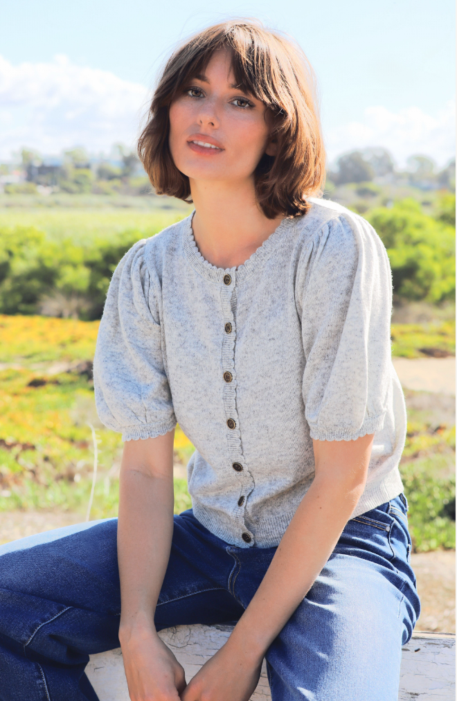 The Coastal Fog Puff Sleeve Cardigan is your new go-to layer for those in-between days when the marine layer rolls in but the vibes stay warm. With puffed short sleeves, delicate scalloped edging, and vintage-inspired buttons, this soft knit cardigan adds a romantic twist to your everyday look.