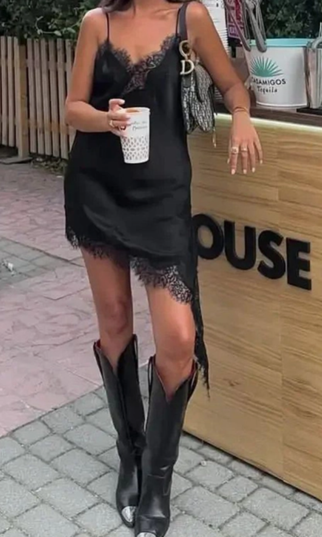 Lace-Trim Asymmetrical Cami Dress