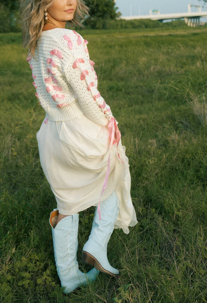 Introducing The Maybelle in Powder Blue - our charming baby blue cowboy boots. These tall boots feature eye-catching parallel embroidered hearts down the sides along with heart-shaped cut-outs to embellish the top pull loops. Perfect for music festivals, country-inspired looks, or adding a touch of romance to your daily ensemble.