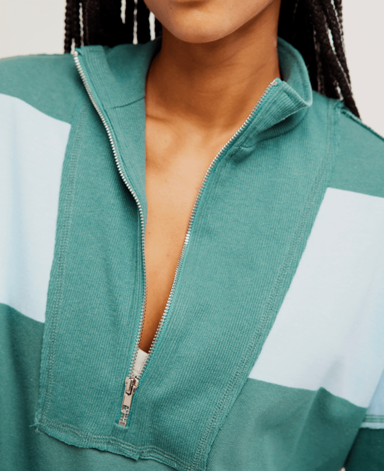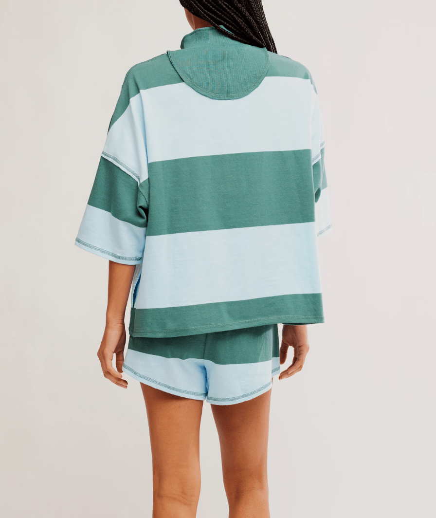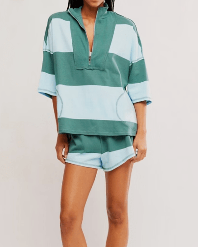 Varsity vibes with a laidback twist. The Retro Rugby Set in Heritage Green Combo is your throwback dream come true, featuring bold colorblocking and an exaggerated half-zip neckline for that borrowed-from-the-boys feel. With its vintage-inspired shape and soft, lived-in cotton, this top brings just the right amount of edge to your everyday rotation.