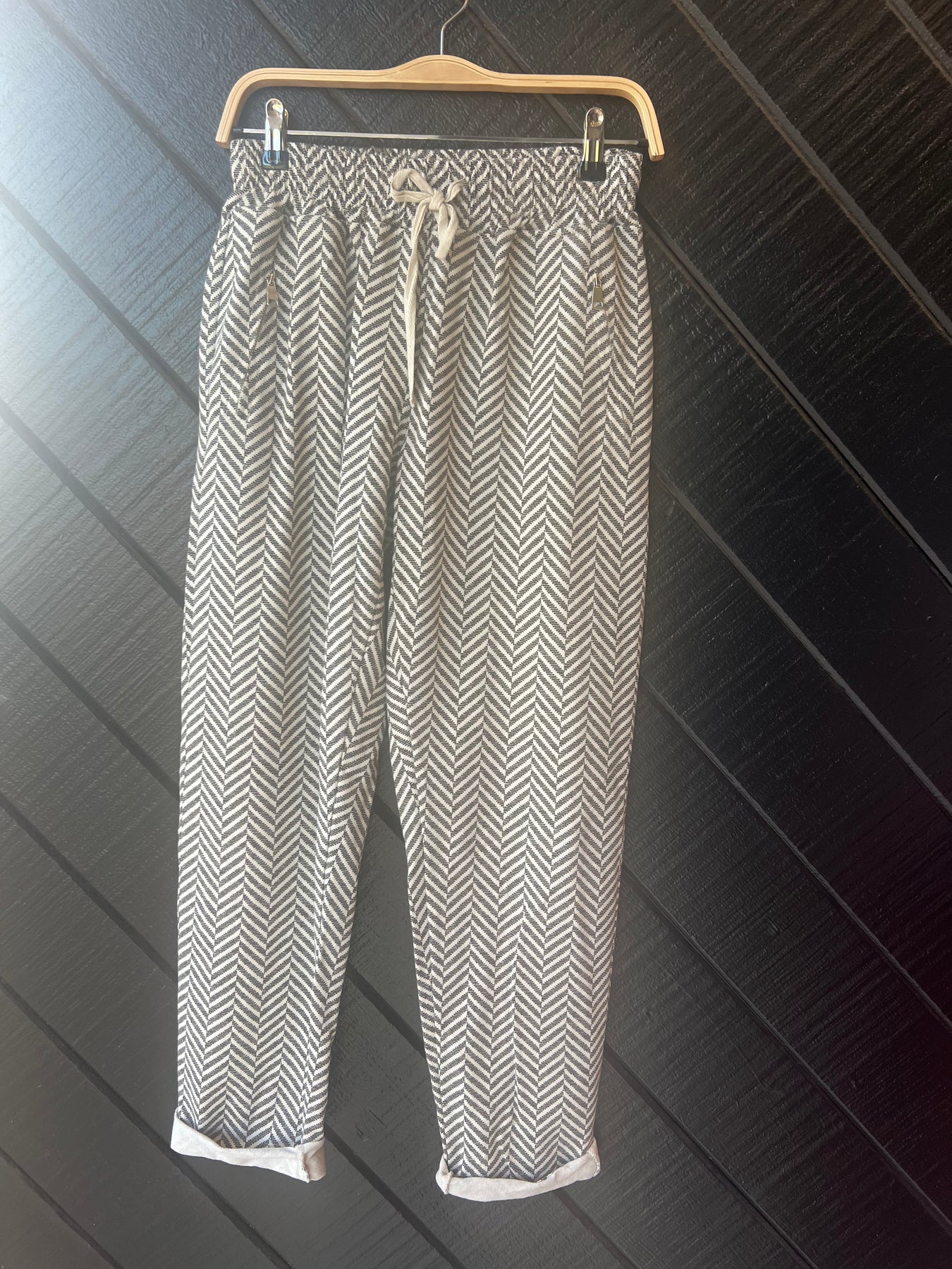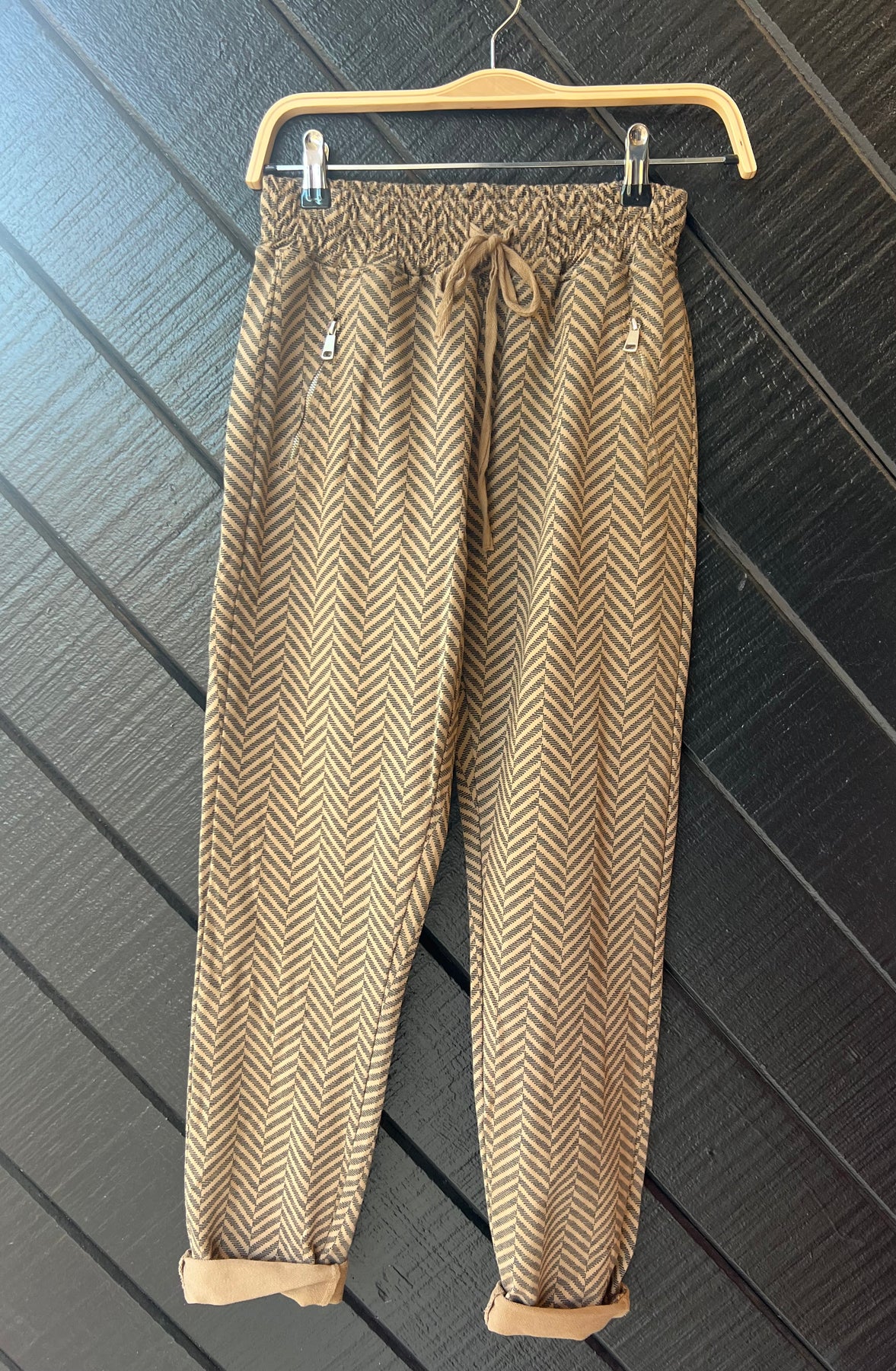 Slip into laid-back luxury with our Coastline Chill Chevron Joggers. These breezy pull-on pants bring an effortless vibe with their neutral chevron pattern and ultra-comfy fit. Perfect for lounging at home or grabbing an iced latte in Encinitas, they’re the soft pant that still brings the style.