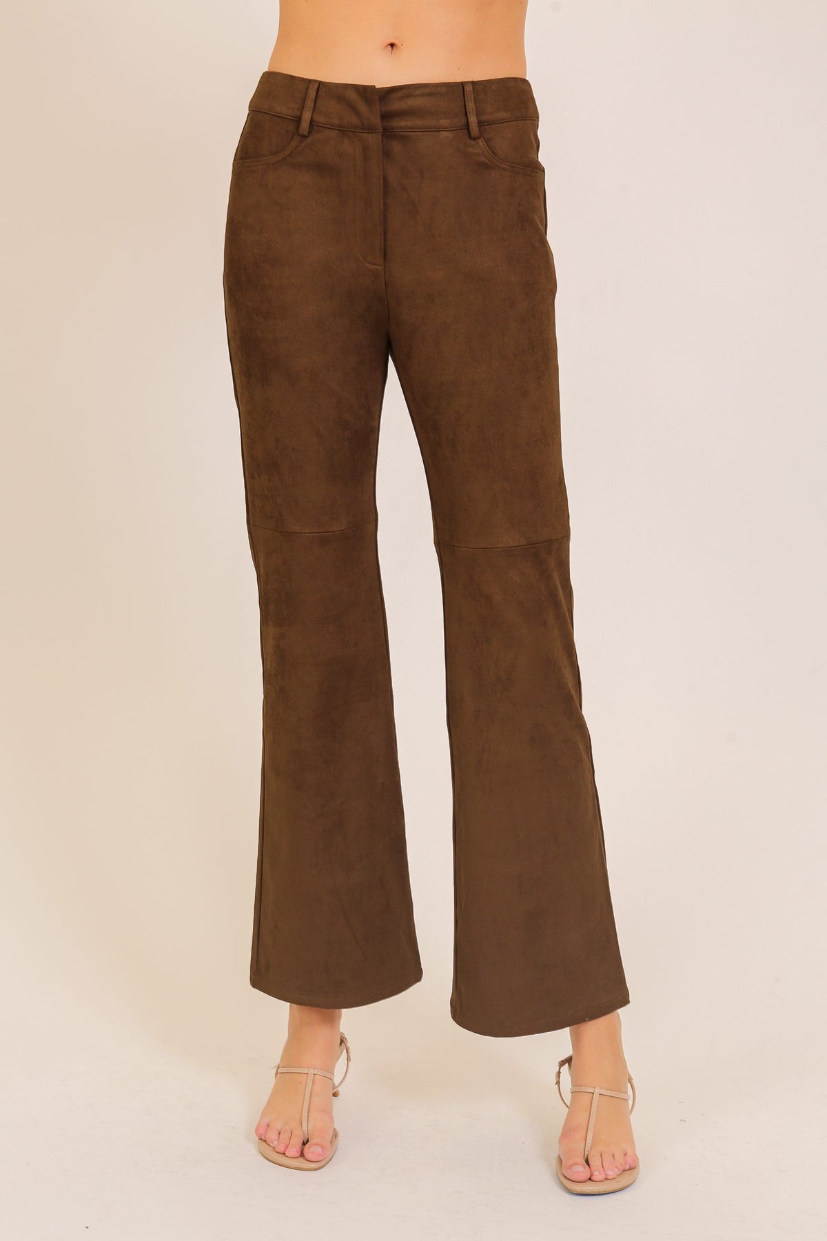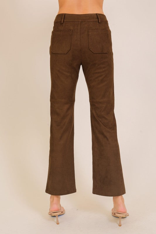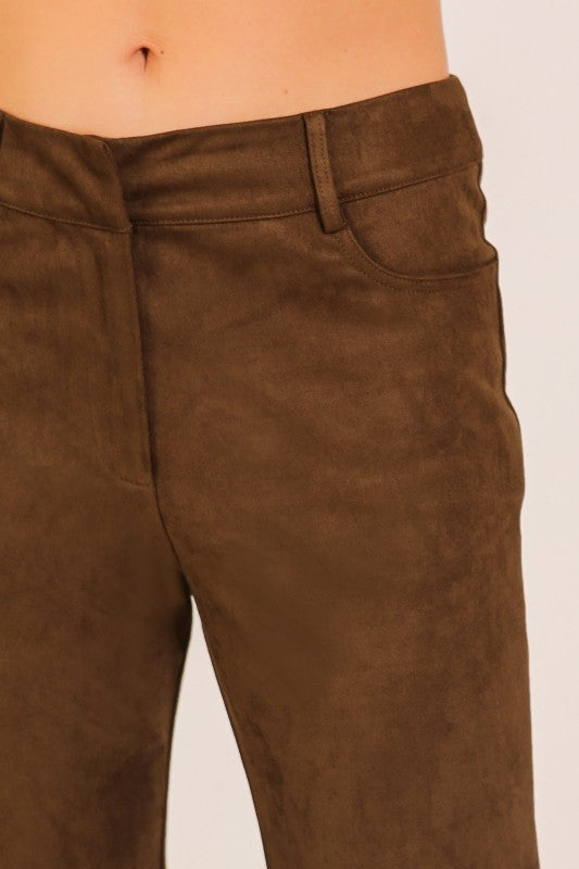 Slip into retro-inspired chic with our Faux Suede Flared Pants, designed to deliver both cozy texture and a bold silhouette. These high-waisted trousers bring a '70s revival feel with a modern, flattering fit.