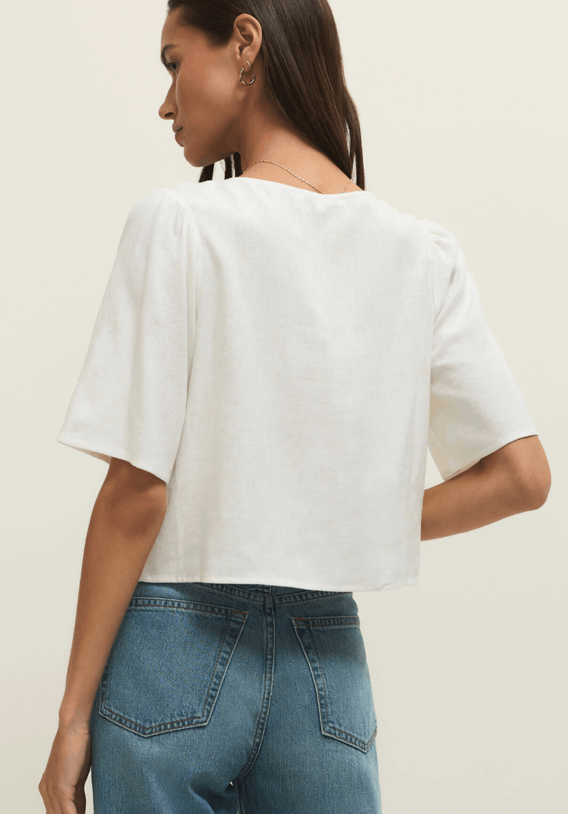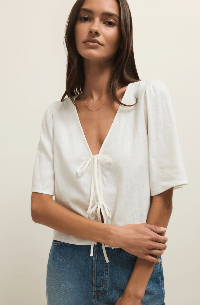 A fresh twist on feminine simplicity, the La Belle Linen Top by Z Supply is made for sunny days and slow living. With its breezy linen-blend fabric, soft puff sleeves, and delicate double tie-front detail, this top is effortlessly romantic with a French-girl edge. It’s the kind of piece you’ll reach for on repeat—equal parts soft, flirty, and totally versatile.