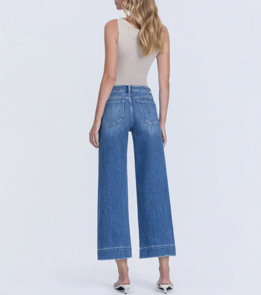 A denim dream come true — the jeans are the ultimate mix of comfort, cool, and California ease. Made from soft, stretchy denim, these wide-leg crops sit high on the waist for a flattering silhouette and flow into a relaxed trouser hem that hits just right above the ankle. Effortlessly elevated, endlessly versatile.